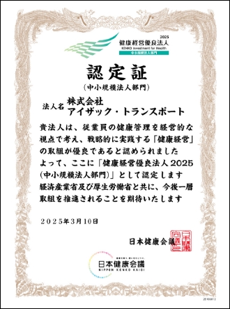 このような取り組みを評価され、2019年5月「健康企業宣言・銀(step1)」、2025年3月「健康経営優良法人2025(中小規模法人部門)」に認定されました。(2020年より6年連続)